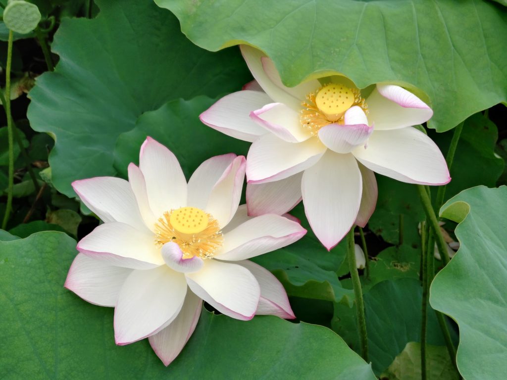 ひまわりのほかにも近くの池には大賀ハスと思われる花も咲いていて綺麗でした。また、ひまわり畑の足元には無数のカエルがいて、歩くと散り散りにピョンピョン跳ねて逃げていきました。