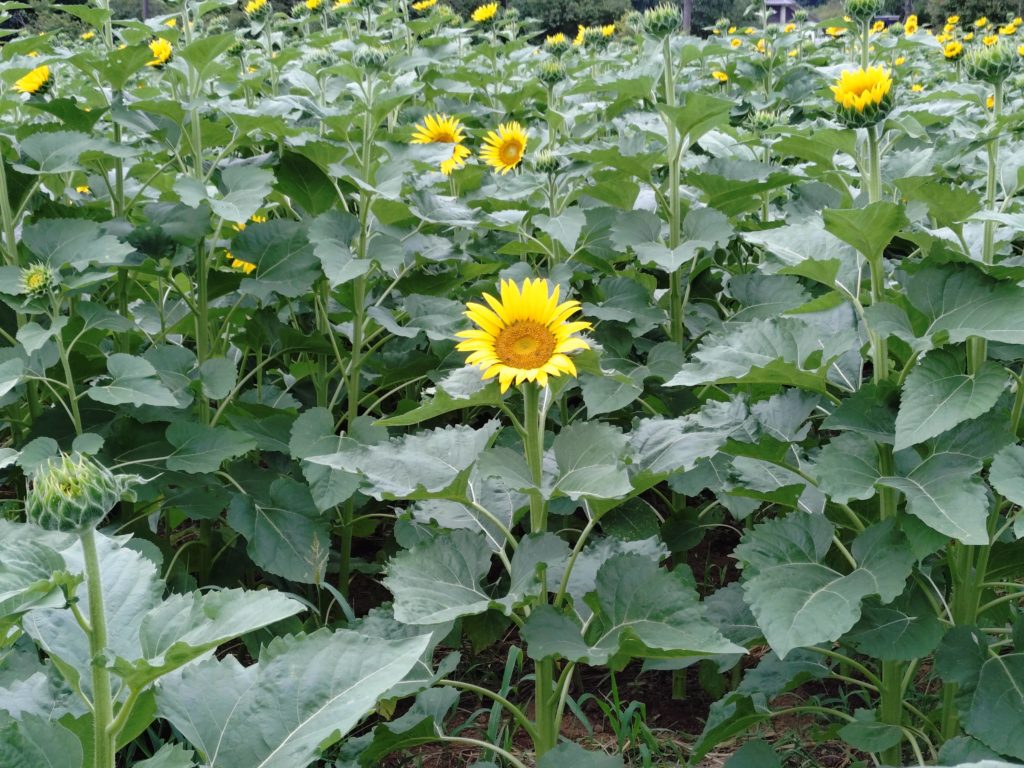出発前からひまわりはまだ見ごろでないとわかっていましたが、やはり到着すると緑ばかりが目につきちょっと残念でした。