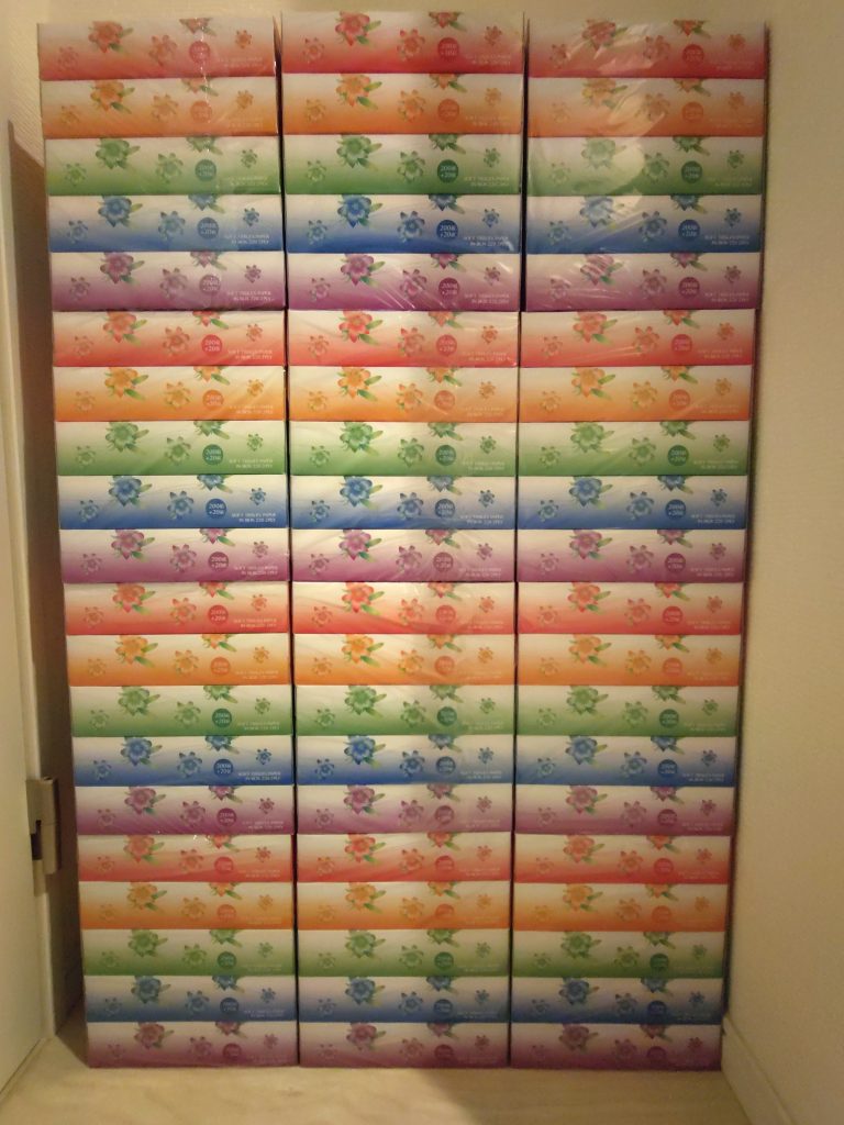 ただしデメリットもあります。大量にティッシュボックスが届くので案外場所を取ります。